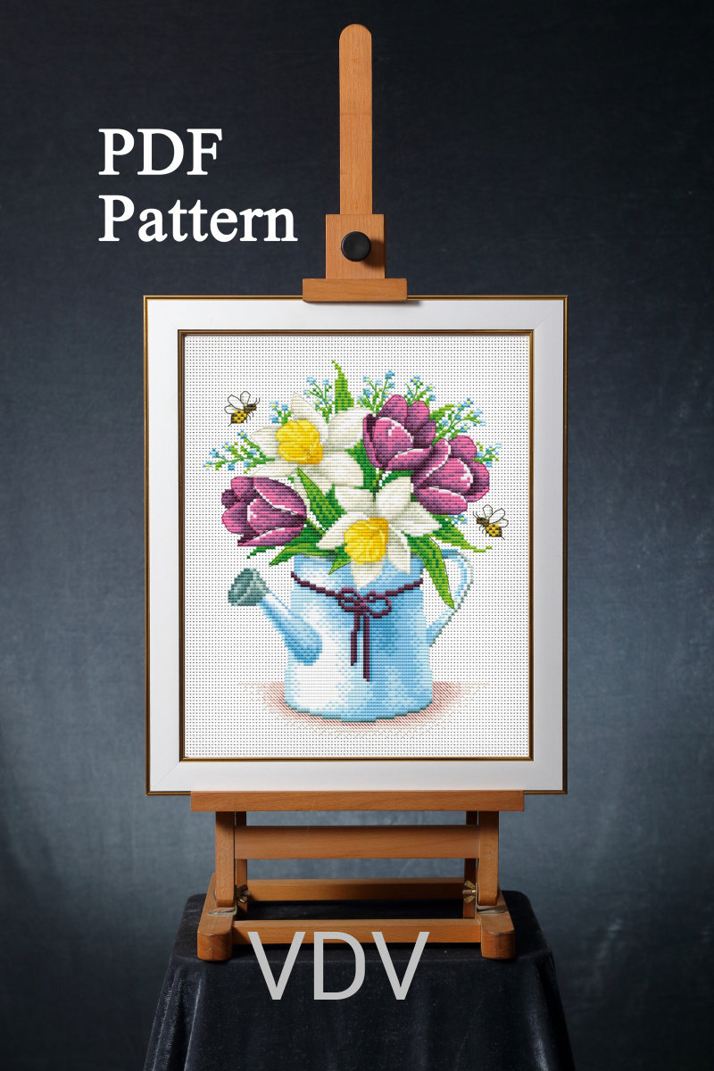Цифрова електронна схема для вишивання хрестиком "Весняний настрій" M-0288, розмір готової роботи 15,5х19 см