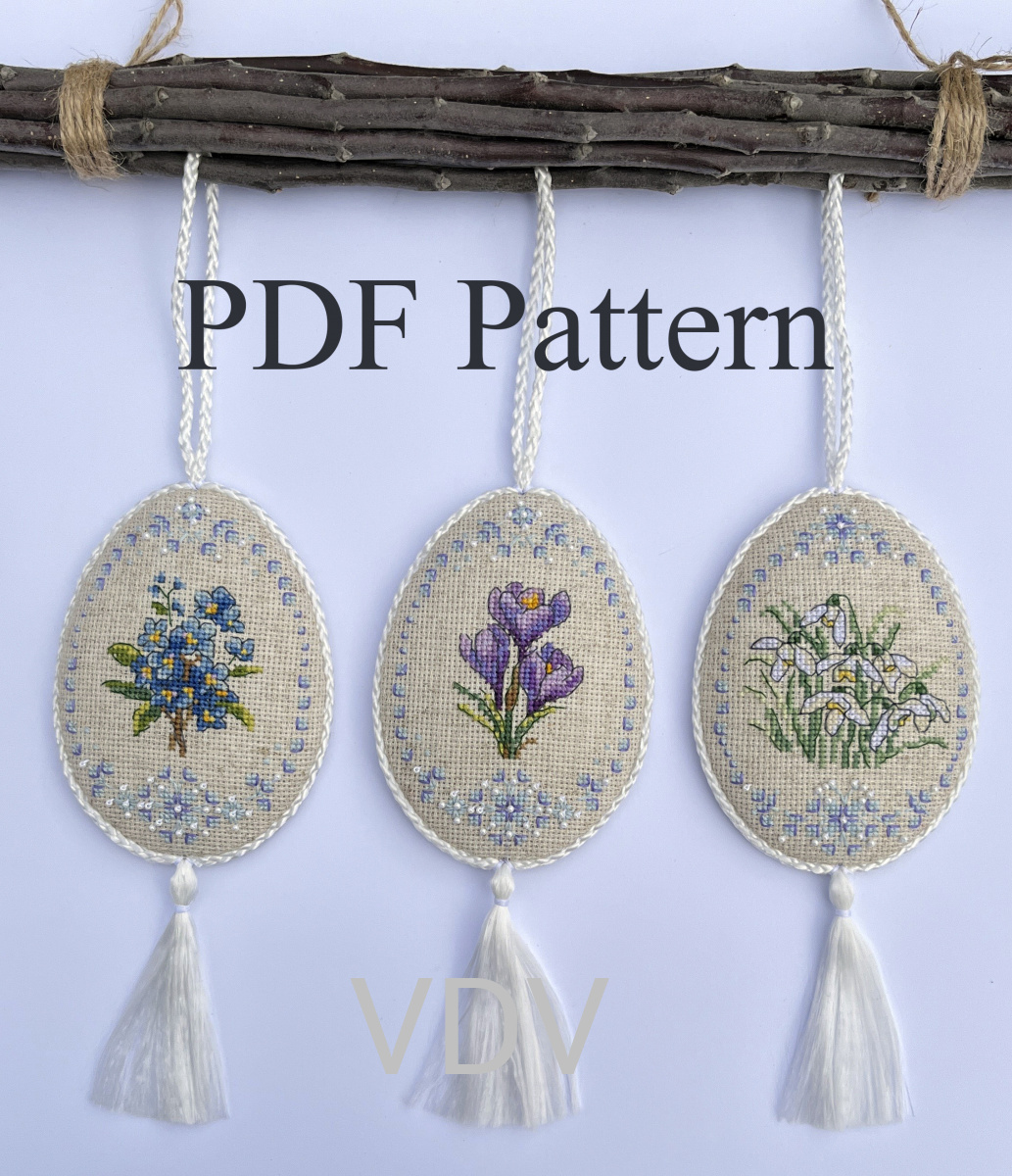 Цифрова електронна схема для вишивання хрестиком "Весняна фантазія (3 іграшки)" M-0334, розмір готової роботи 7х10,5 см.