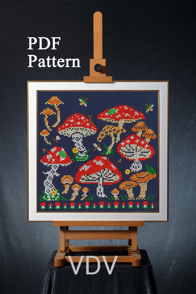 Цифрова електронна схема для вишивання хрестиком"Мухоморчики" M-0380, розмір готової роботи 14х14 см
