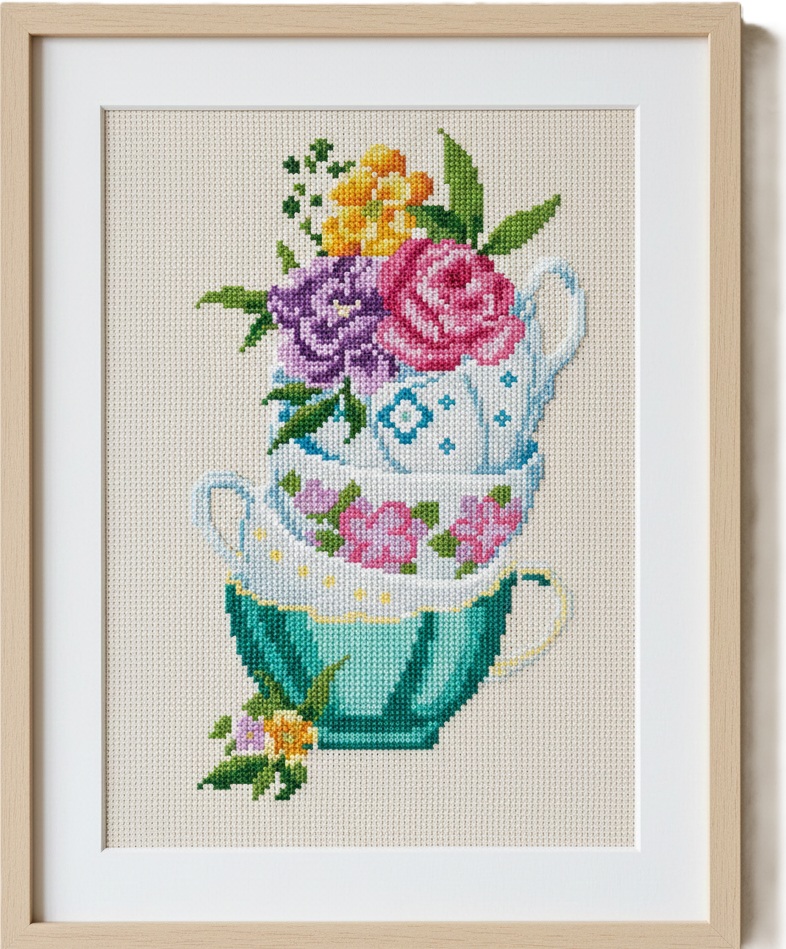 М-0883 "Квіткове чаювання" (набір для вишивання муліне ДМС) 14x23 см. Вишивка Чашка з Квітами.. Купити товари для вишивки та рукоділля за найкращою ціною у ВДВ Київ