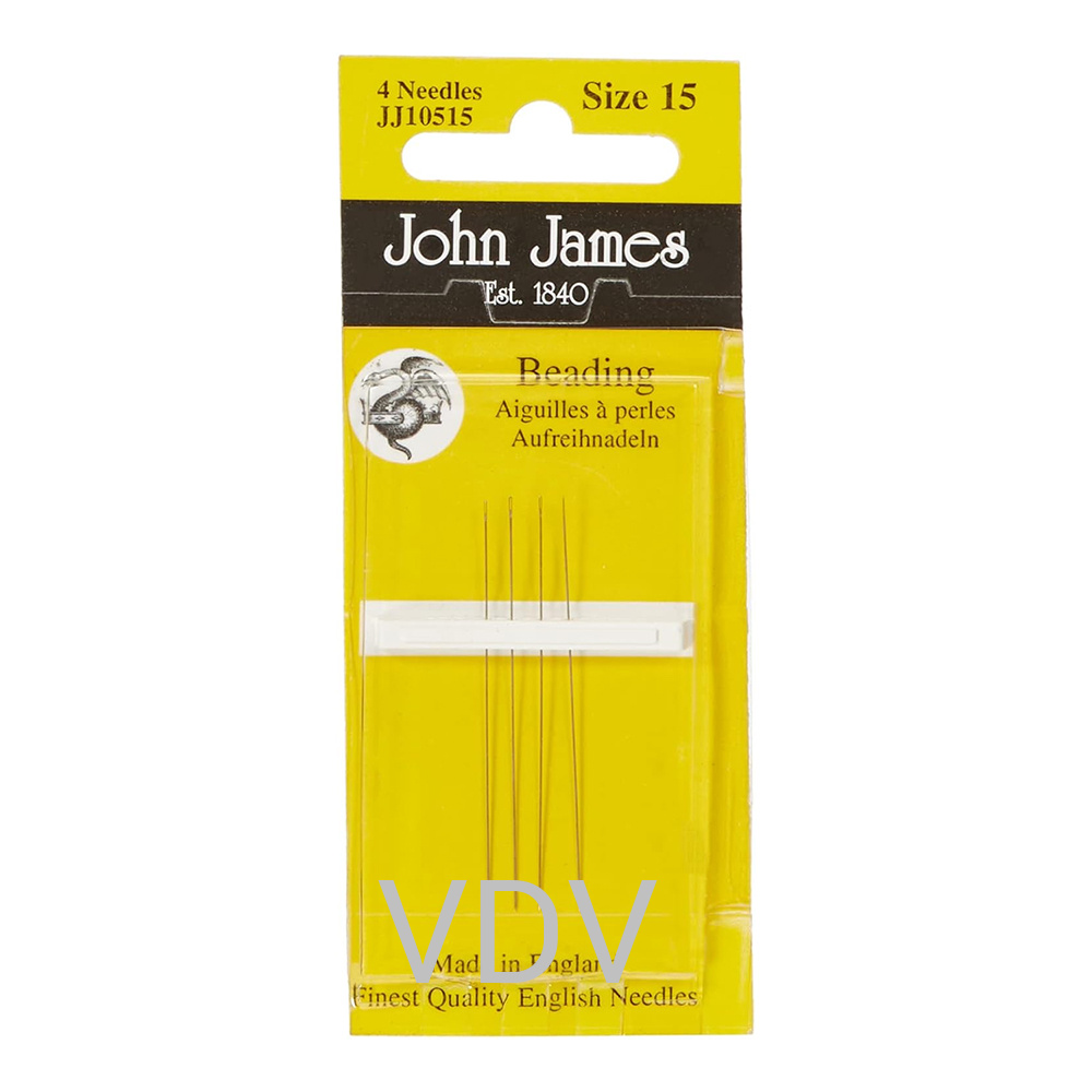 Бісерні голки John James JJ10515E №15 - це професійні надтонкі ручні голки, спеціально розроблені для бісероплетіння та роботи з дрібними декоративними елементами. Вони мають подовжену форму та довгі вушка, що забезпечує легке нанизування бісеру, перлів і блискіток навіть із мінімальним отвором. Голки виготовлені з найтоншого сталевого дроту з високою точністю, що гарантує гнучкість, міцність і комфорт у роботі. У комплекті 4 голки, виготовлені в Англії, ідеально підходять для створення витончених прикрас і професійних рукодільних проєктів.