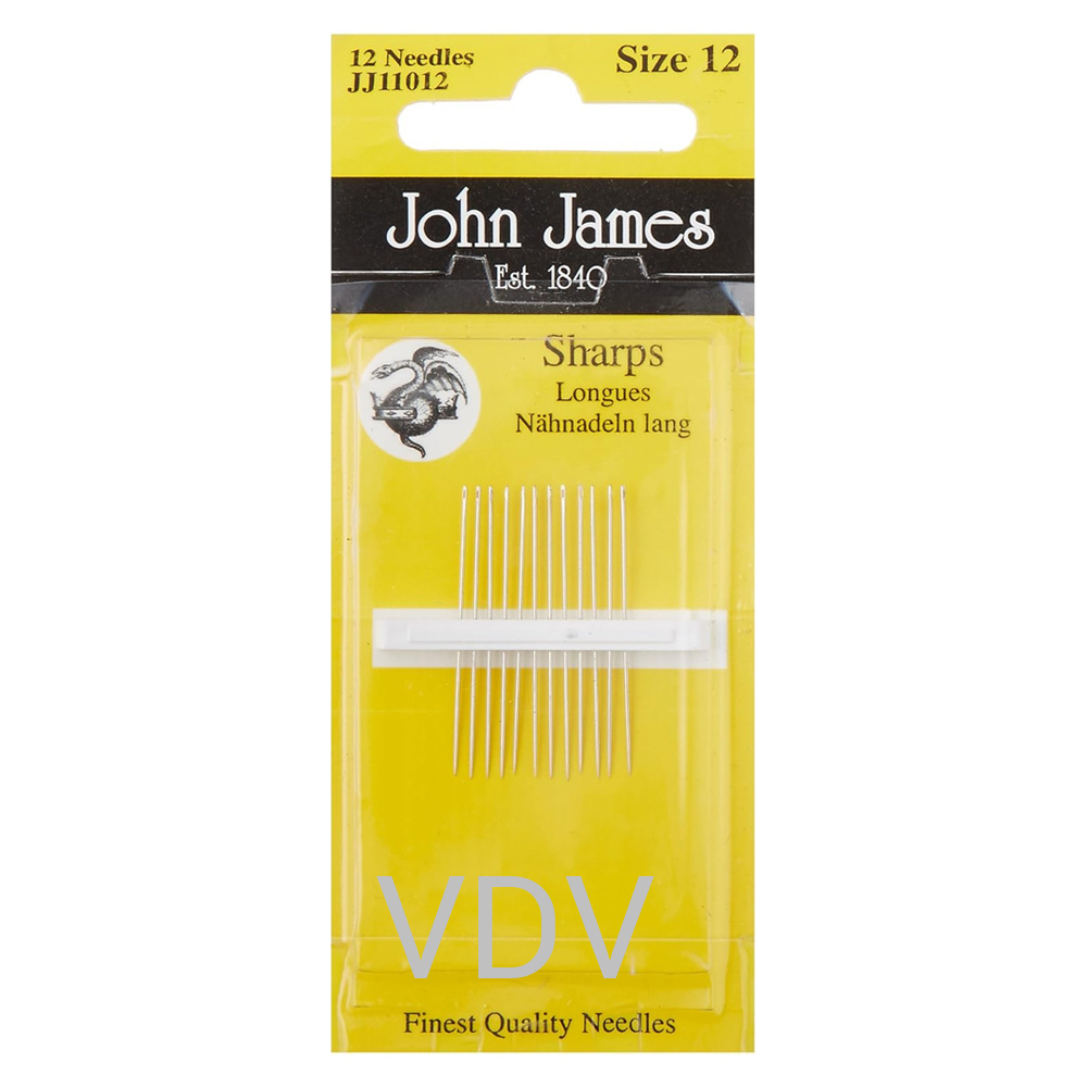 Швейні голки John James Sharps JJ11012E №12 - це універсальні ручні голки загального призначення, які широко використовуються кравчинями та майстрами рукоділля по всьому світу. Завдяки тонкій і короткій формі та міцним круглим вушкам вони забезпечують точність, акуратність і надійність під час шиття. Розмір №12 ідеально підходить для створення дрібних, делікатних стібків на тканинах легкої та середньої щільності. У комплекті 12 голок, виготовлених в Англії з високоякісної загартованої сталі, що гарантує комфортну роботу та довгий термін служби.