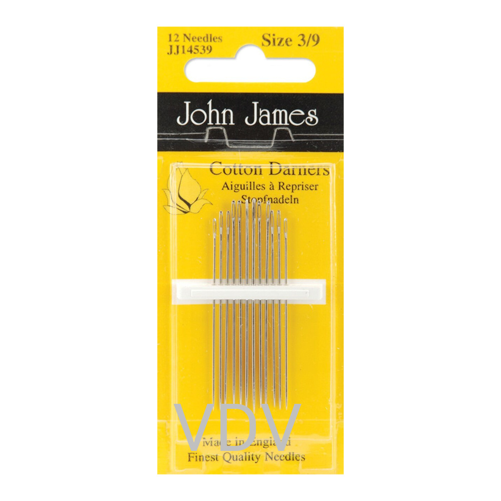 Голка для штопання John James JJ14539E №3/9 - це високоякісні короткі ручні голки, призначені для ремонту та штопання виробів з тканини, бавовни та пряжі. Вони мають гострі кінчики та подовжені вушка, що забезпечує легке протягування нитки та зручність у роботі. Голки виготовлені в Англії з міцної загартованої сталі, що гарантує довговічність і точність шиття. У комплекті - 1 блістер із 12 голками, що ідеально підходить як для професійного використання, так і для домашнього рукоділля.