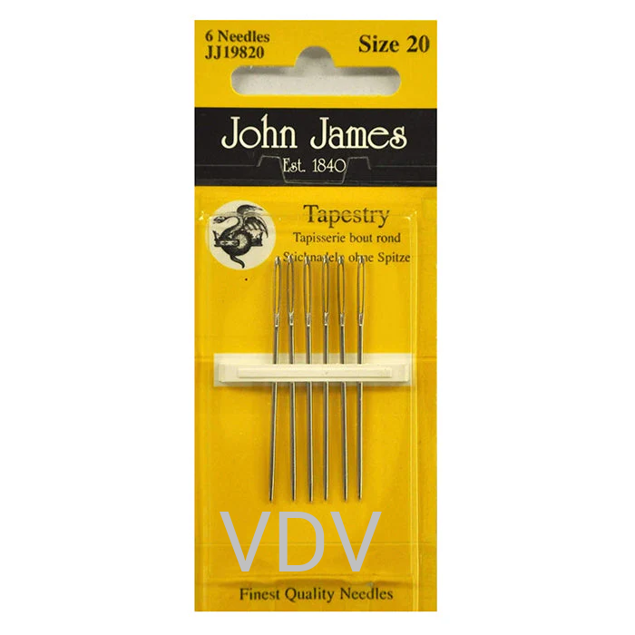 Гобеленові голки John James JJ19820E №20 - це спеціалізовані ручні голки для вишивки хрестиком, гобеленової техніки та роботи з канвою. Вони мають велике вушко та тупий округлий кінчик, який дозволяє голці легко ковзати між волокнами тканини, не пошкоджуючи їх. Голки ідеально підходять для вишивки дрібним хрестиком, контрхрестиком, а також для роботи з пластиковою канвою та відкритими сітчастими тканинами. У наборі 6 голок, виготовлених в Англії з високоякісної сталі, що гарантує комфорт, довговічність і професійний результат у рукодільних проєктах.