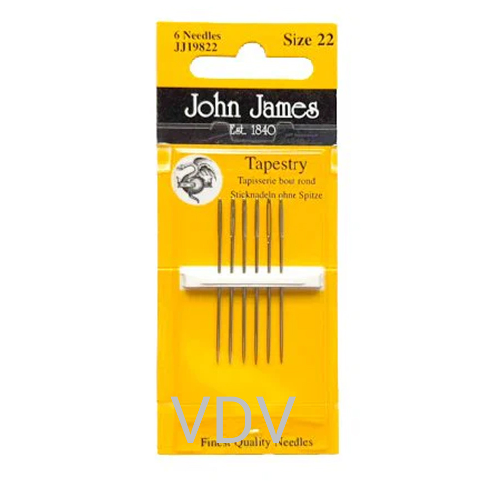 Гобеленові голки John James JJ19822E №22 - це спеціалізовані ручні голки для вишивки хрестиком, гобеленової техніки та роботи з канвою. Вони мають велике вушко та тупий округлий кінчик, який дозволяє голці легко ковзати між волокнами тканини, не пошкоджуючи їх. Голки ідеально підходять для вишивки дрібним хрестиком, контрхрестиком, а також для роботи з пластиковою канвою та відкритими сітчастими тканинами. У наборі 6 голок, виготовлених в Англії з високоякісної сталі, що гарантує комфорт, довговічність і професійний результат у рукодільних проєктах.