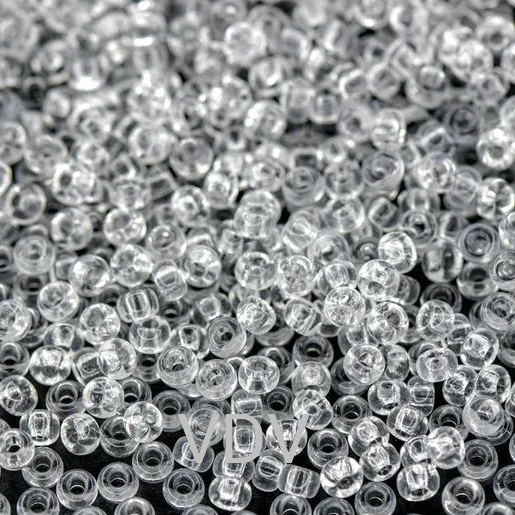 Прозорий, з кольорового скла, зі срібним отвором, який надає бісеру яскравий блиск.