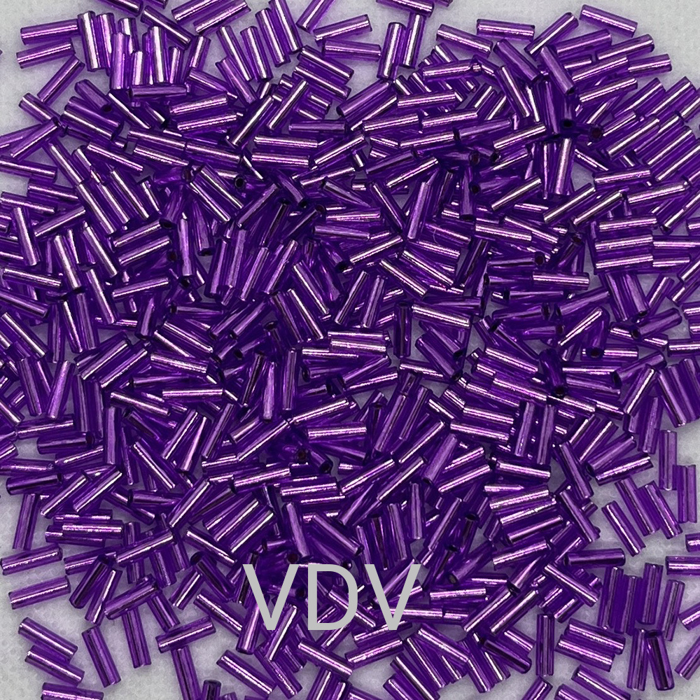 Цей стеклярус прозорий, з кольорового скла з блискучим "вогниковим" покриттям і сріблястим отвором.