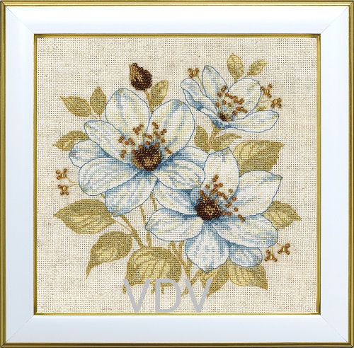 КВ М-0315 "Золоте мереживо білих квітів" (вишита картина муліне ДМС) 20х20 см