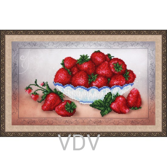 КВ Т-0824 "Полуничний блюз"(вишита картина бісером Preciosa (Чехія) 34х19.5 см