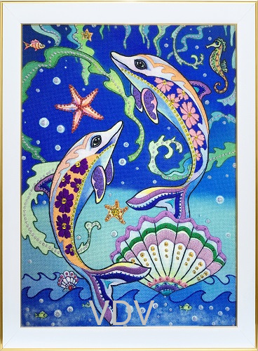 КВ ВК-0109 "Дельфіни" комбінована вишивка (нитки, бісер)  22х31 см
